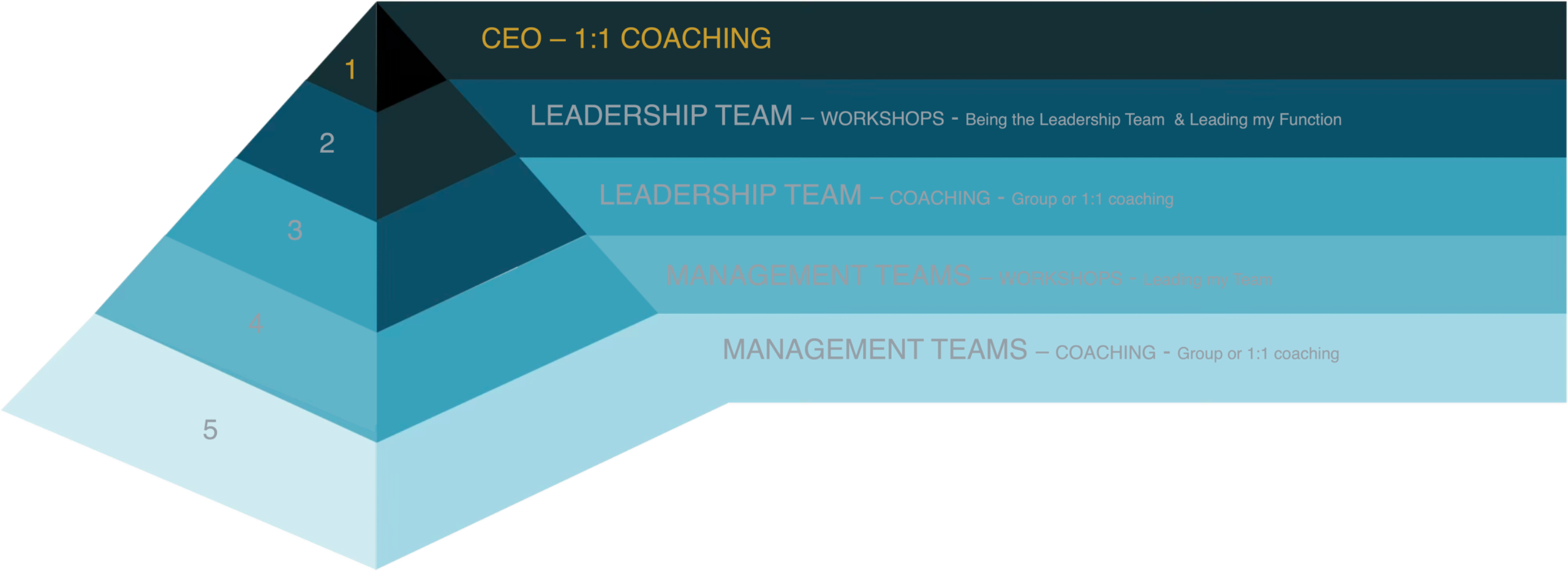 Every engagement starts with the CEO. That is always the entry point. From there, the work can extend into the organisation at whatever depth is needed, from the leadership team all the way through the management population.